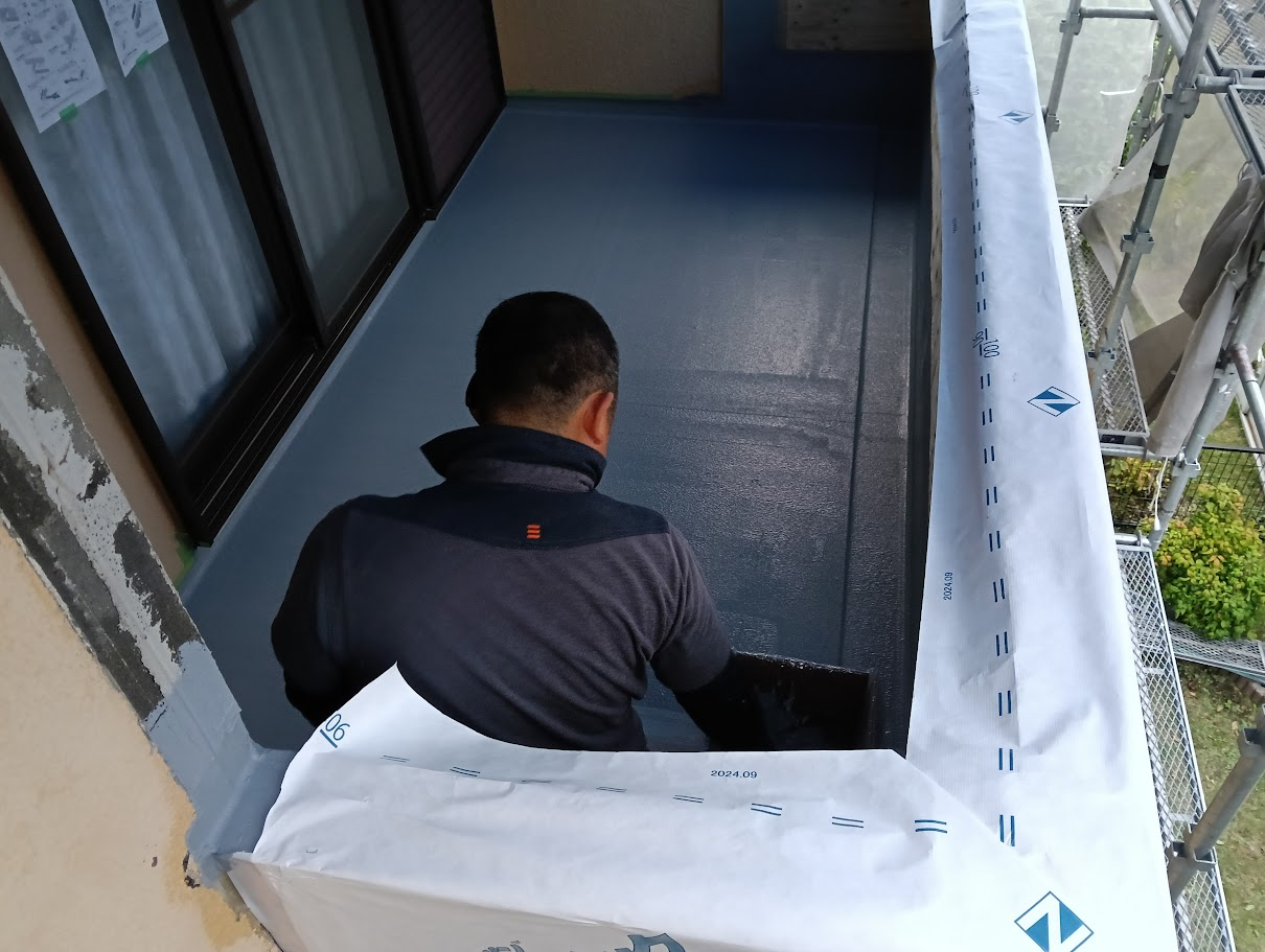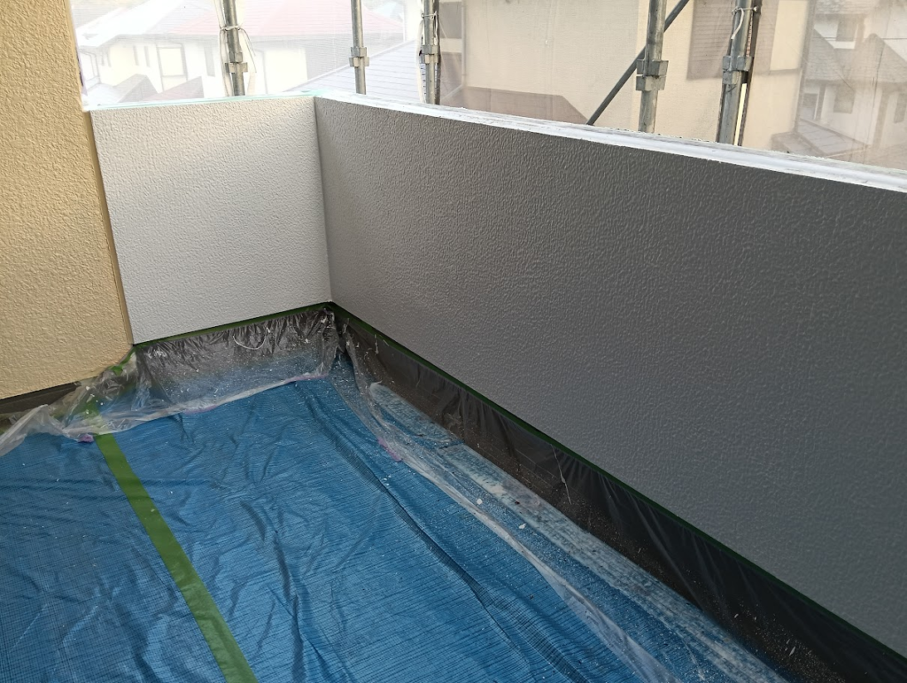 逗子市沼間での外壁塗装も順調に進んでいます。数日前に、新たに作ったベランダの手すり壁に塗装をしました。