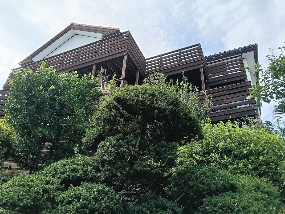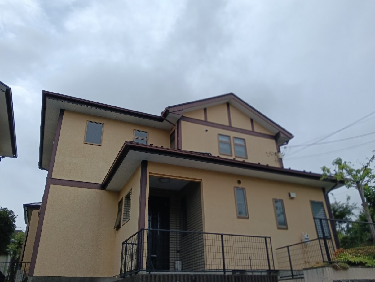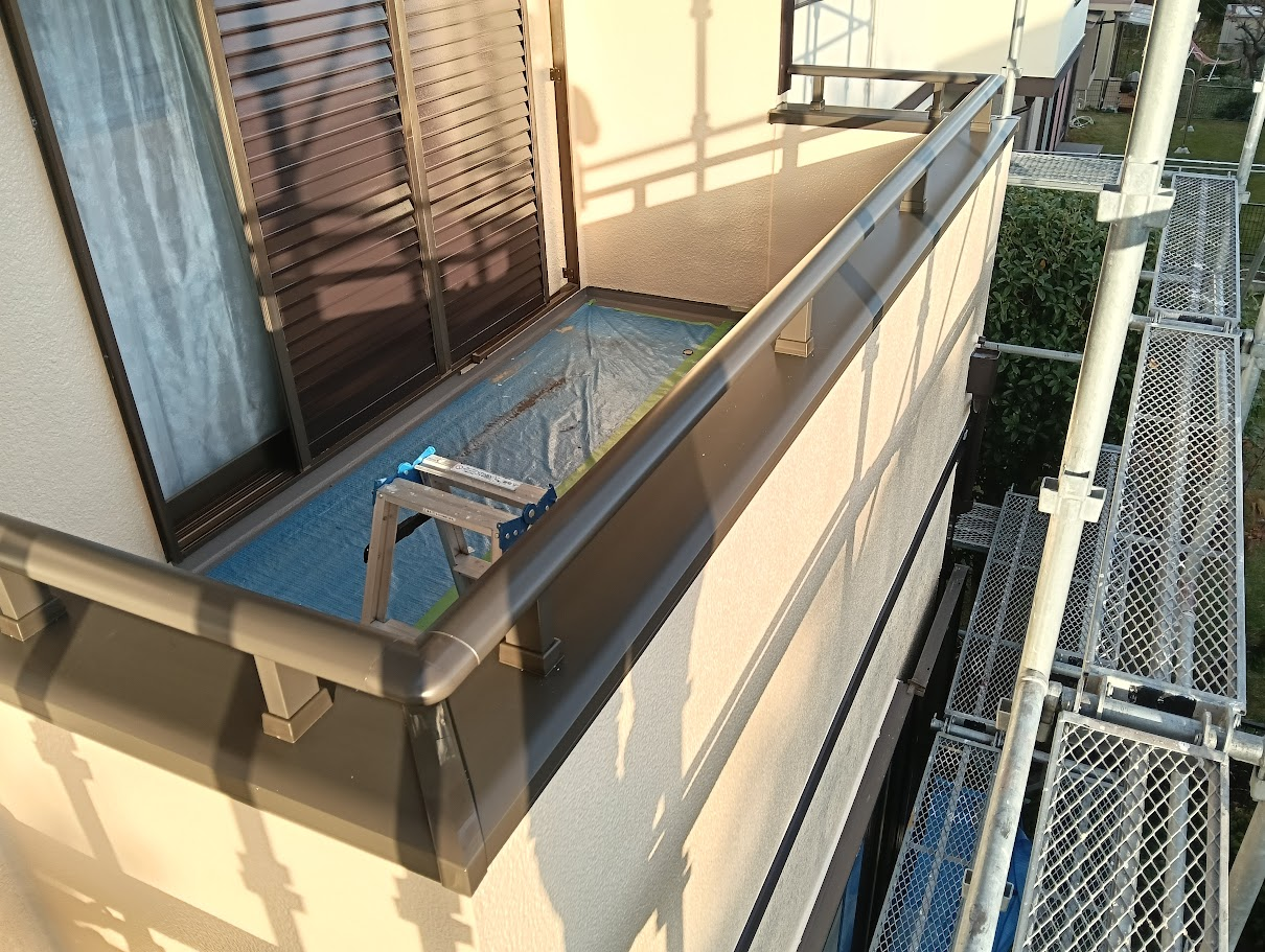 ご覧のようにベランダを新たに作りなおした形になりましたが、元の建物とも上手にマッチしており、非常に良い出来栄えとなりました。全体的に元の色よりもやや明るめになり、どっしりした構えでありながら明るい印象を持たせる外観となりました。