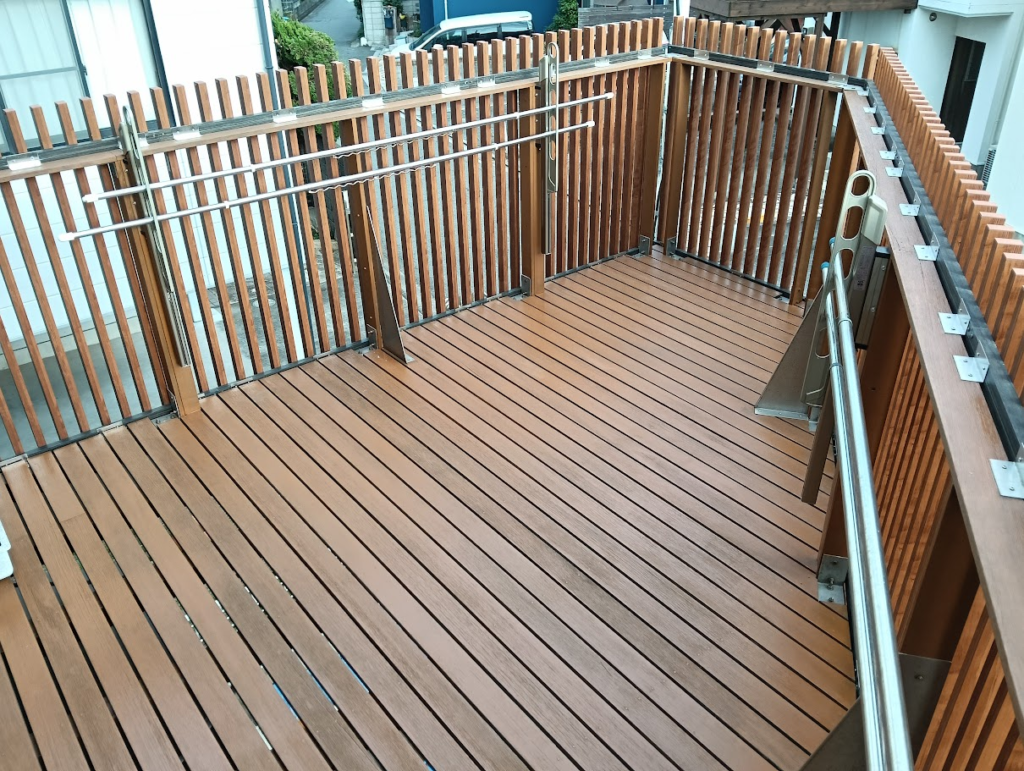 こちらが塗装前のデッキ床です。ちなみに横の目隠しは人工目隠しなので塗装していません。