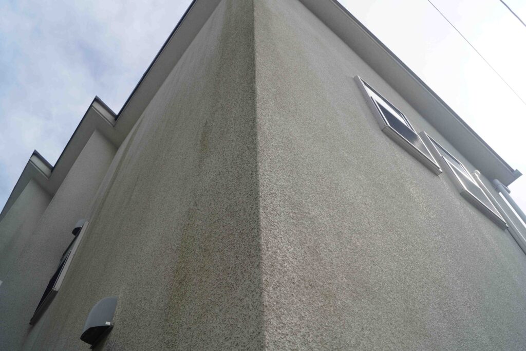 築十数年経っており、塗り替えのタイミングといえます。外壁の表面もコケ類や水垢による汚れが目立っていました。